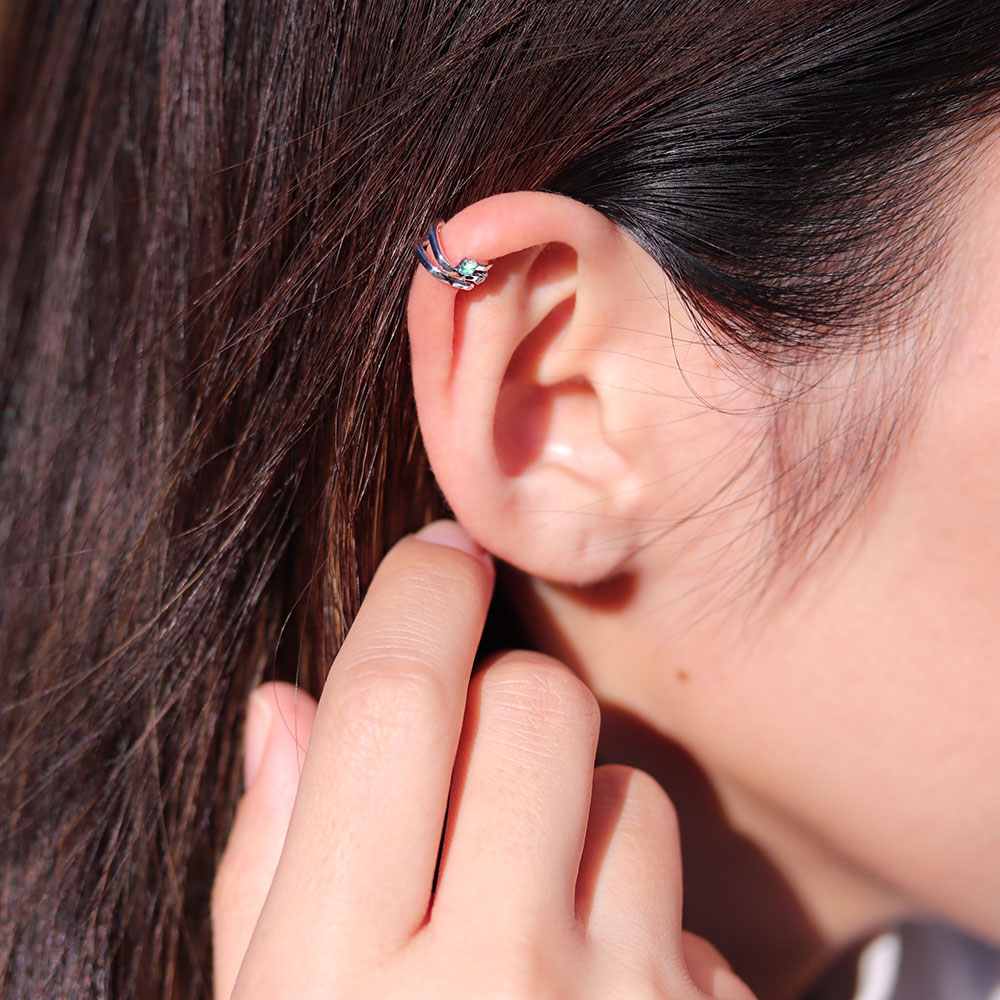 5月誕生石エメラルドを使用したシルバー製のイヤーカフです。