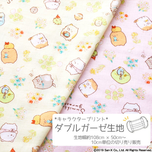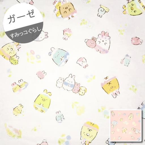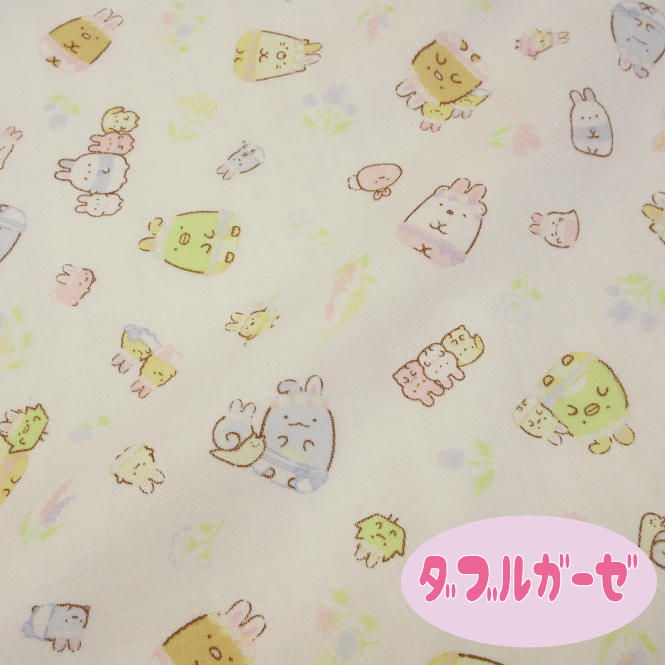 キャラクター リップル生地 ( サッカー生地 ) すみっコぐらし( オフホワイト ) (◆この柄は1m50cmまでメール便可能です。) リップル(綿100%)生地幅−約108cm ( すみっこぐらし すみっこ ) ( 浴衣 ゆかた 甚平 マスク )