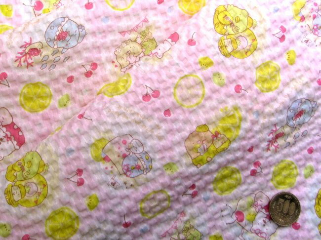 )現在地 ● トップ > ママがんばって! > 生地 > リップル(サッカー)生地 > すみっコぐらし( ピンク系 ) −− <夏の生地の定番です!> −− ワンピースやスカート・甚平・浴衣など色々なものが作れます。