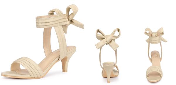 ソウテン Perphy ミッドヒールサンダル キトゥンヒール オープントゥ フリルアンクルタイバック レディース ベージュ 24.5cm