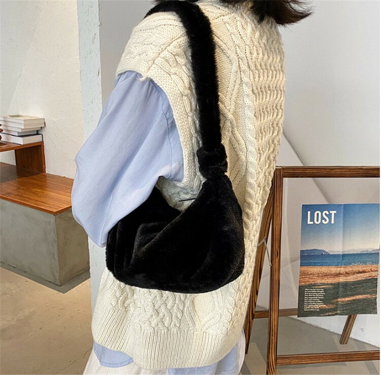 韓国ファッション トートバッグ もこもこ ジッパー ファッション可愛い[K](T)