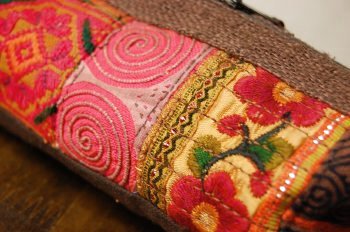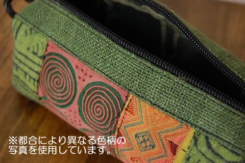 ギフト対応 タイの少数民族の手刺繍のポーチ! ろうけつ染めのヘンプ(大麻)生地と少数民族の刺繍布を組み合わせたポーチ☆