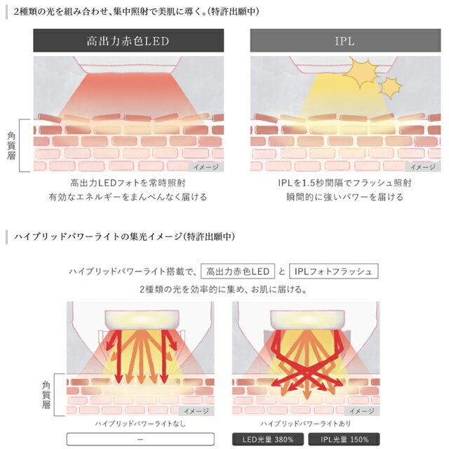 美容クリニックの技術に学んだ高出力LED×IPL2種類のフォトフラッシュ。